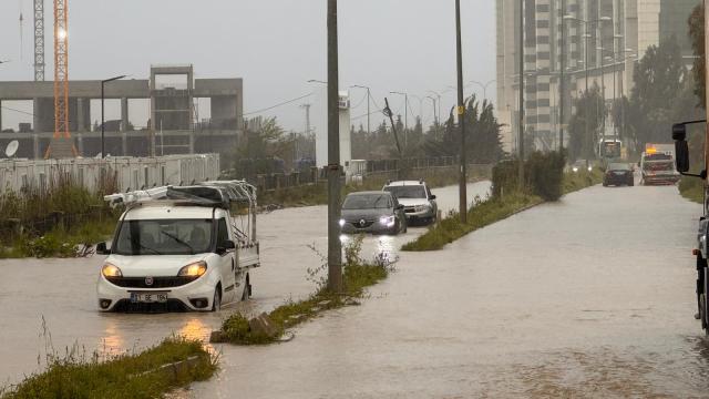 Hatay'ın merkez Antakya ilçesinde sağanak nedeniyle cadde ve sokaklarda su birikintileri oluştu, bazı araçlar yollarda mahsur kaldı.